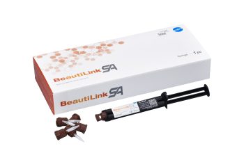 BeautiLink SA is a two-component, dual-cure, self-adhesive resin cement formulated for swift, simple and secure adhesion to a multitude of dental substrates, ranging from tooth abutment to zirconia, porcelain, lithium disilicate, metal, hybrid ceramics and indirect composites. The novel multifunctional monomer formulation with unique silane coupling agent and innovative, highly reactive, yet stable catalyst, facilitates strong, reliable and lasting bond in both light and chemical cure modes, with a secure marginal seal and virtually no post-op sensitivity. The radiopaque cement ensures an easy, mess-free clean-up and a streamlined workflow with less wastage. The stable shades meet daily aesthetic needs with greater predictability of outcome and less error.