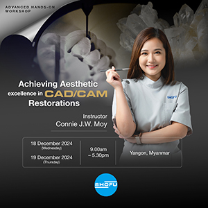Date: 18 &19 December 2024 Time: 9.00am– 5.30pm Venue: Yangon, Myanmar Synopsis CAD/CAM zirconia restorations are routinely prescribed in the dental practice, with increasing digitalization of the dental workflow. Monolithic zirconia restorations require customization to match the natural teeth either by staining or porcelain micro-stratification and in some case as in the anterior aesthetic zone, […]