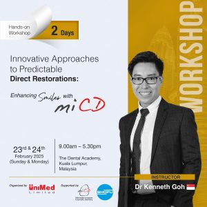 Date: 23-24 February 2025 Time : 9am – 5:30pm Venue: The Dental Academy, Kuala Lumpur, Malaysia  Synopsis Meeting patient expectations while selecting the most suitable treatment option is a common challenge for clinicians. Minimally Invasive Cosmetic Dentistry (MiCD) emphasizes holistic, patient-centric care, prioritizing preservation of sound tooth structure alongside optimal aesthetic and functional outcomes. This […]